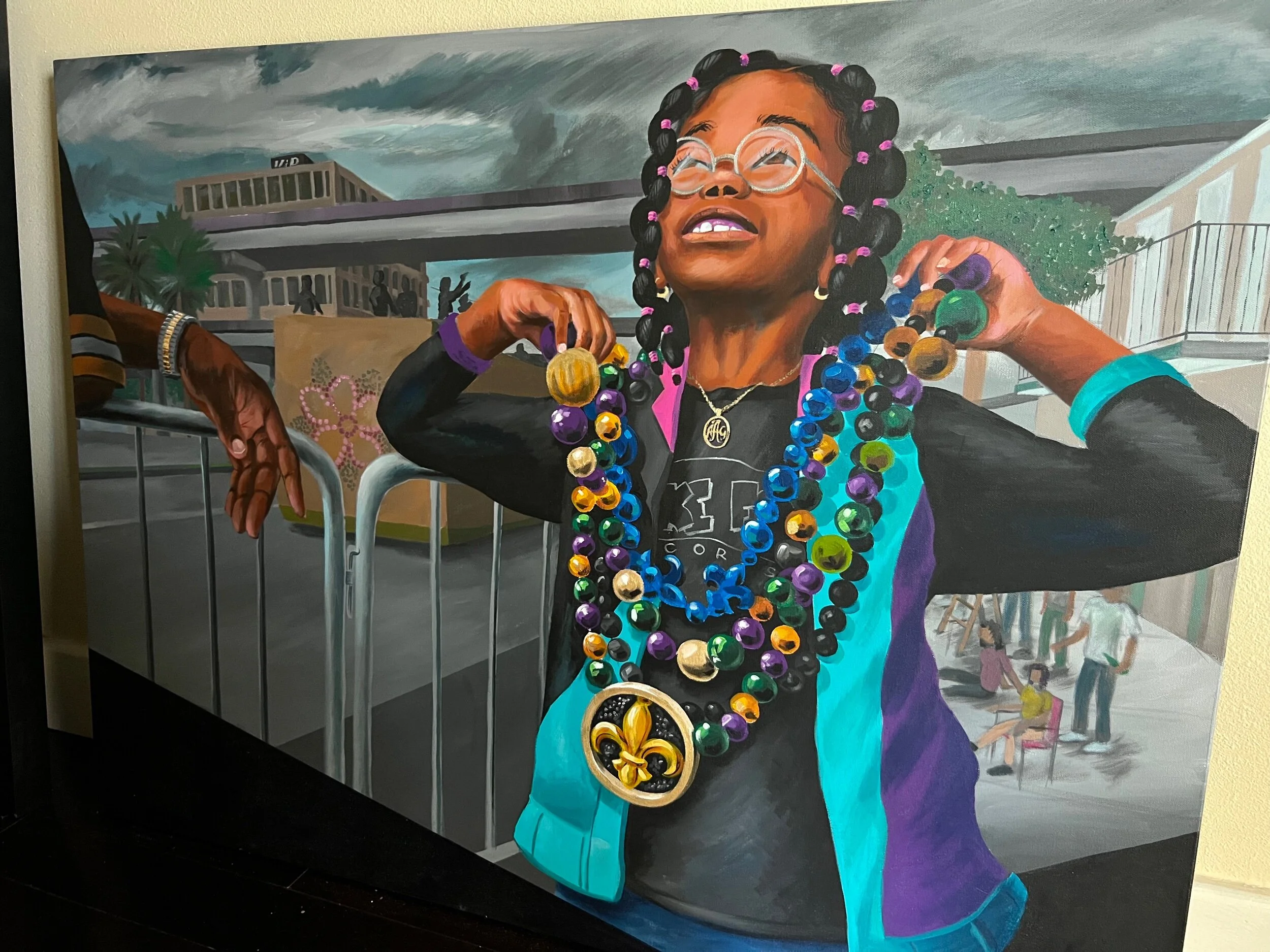 Courtney "Ceaux" Buckley is a New Orleans-born multidisciplinary artist living and working in New Orleans, Louisiana. For over a decade, Ceaux's robustly vivid paintings have pierced through the rich pulsating cultural fabric of New Orleans and its people. Ceaux was trained at The New Orleans Center for Creative Arts. His visual work has been featured and exhibited in an array of venues including Axiom Gallery, The Mckenna Museum of African American Art and more recently, ExhibitBE. His career background includes musical production, education, and fashion design, which has given him a unique capability to focus on a range of subjects not commonly covered by other visual artists. "When people look at my work, I want them to see a part of themselves in it, a sense of nostalgia."